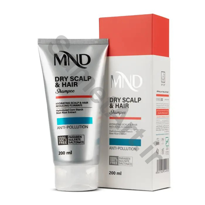 شامپو مناسب پوست سر و مو خشک MND با ترکیبات شوینده ملایم تولید شده تا ترکیبات روغن دوست کف سر و مو را کم نکرده و موجب تشدید شرایط نشود. این شامپو حاوی ترکیبات رطوبترسان مانند اریتریتول، دکسپانتنول و سدیم پیسیای است تا رطوبت مو و کف سر به سرعت افزایش یافته و وزی مو کاهش یابد. البته در این شامپو گلیسرین و زایلیتول هم وجود دارند که اثبات شده است که کاهنده التهاب بوده و خارش کف سر را کم میکنند. استفاده همزمان ازعصاره ریشه چغندر به همراه نشاسته هیدرولیزشده ذرت نیز این امکان را به محصول داده است که بتواند همزمان رطوبت پوست و مو را افزایش داده و در عین حال شانهپذیری موها را بهبود دهد. حضور فیتواستریل-اکتیل دودسیل لائوریل گلوتامات در این شامپو نیز باعث شده تا رطوبت در سطح پوست و مو محبوس شده و مو نرم و لطیف شود. به منظور محافظت کامل دربرابر آلودگی پیرامون افراد هم از عصاره ریشه سرخارگل بهره گرفته شده تا آلودگی نتواند باعث تداخل در روند بهبود خشکی کف سر و موی افراد شود.