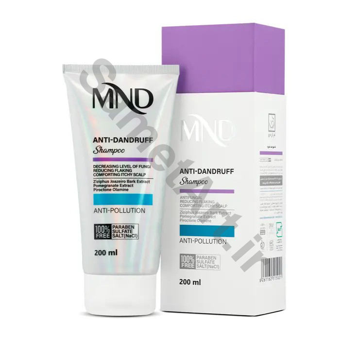 شامپو ضدشوره MND پیروکتون الامین را در خود دارد که تحقیقات علمی متعددی کارآیی آن در کنترل قارچ مولد شوره را به اثبات رساندهاند و یکی از ترکیبات به روز و موثر برای محصولات ضدشوره است. اما علاوه بر آن، عصاره پوست درخت کُنار جوآزیرو هم به این محصول اضافه شده که جمعیت باکتریایی پوست کف سر را تنظیم کرده و با کنترل تولید سبوم از شدت گرفتن شوره سر، ممانعت میکند. این عصاره قادر به کاهش خارش پوست سر هم هست اما به منظور تقویت این خاصیت، از عصاره انار نیز بهره گرفته شده تا با کاهش التهاب پوست سر، مصرفکننده احساس خوشایندی از مصرف این محصول داشته باشد. چون حضور در محیطهای آلوده شهری امری اجتنابناپذیر است از عصاره ریشه سرخارگل نیز در این محصول به عنوان ترکیب محافظتکننده دربرابر آلودگی استفاده شده تا آلودگی و ذرات معلق نتوانند با ایجاد التهاب در پوست سر موجب به تعویق افتادن رفع شوره سر شوند.