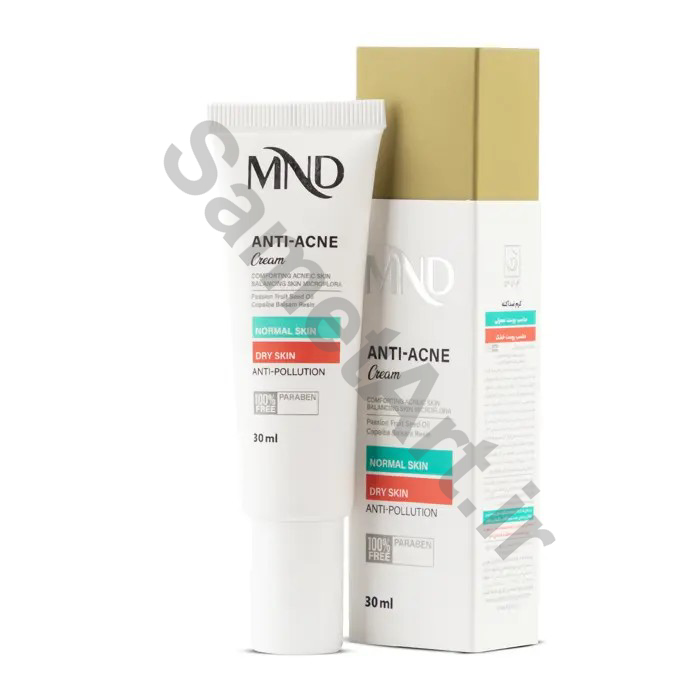 جوش و آکنه در پوست خشک و معمولی اکثرا منشا التهابی داشته و این التهاب میتواند باعث قرمزی شدید و ایجاد لک در پوست شود که بسیار ناخوشایند است. کرم ضدآکنه (جوش) MND دارای روغن دانه میوه گل ساعتی و صمغ بالزام کوپایبا است که به خوبی حساسیت و تحریکپذیری پوست را کاهش داده و نمیگذارند عوامل بیرونی باعث ایجاد قرمزی و التهاب در پوست شوند. این ترکیبات همچنین کمک میکنند تا جمعیت باکتریایی سطح پوست تنظیم شده و متعادل گردد که برای سلامت و کاهش مشکلات پوست بسیار مناسب است. البته بهعنوان مکمل ترکیبات فوقالذکر، از عصاره گل کاملیا ژاپنی نیز کمک گرفته شده است که تاثیرگذاری عوامل پیرامونی مانند آلودگی هوا بر روی پوست را کاهش داده و این محصول وظیفه محافظت از پوست دربرابر آلودگی را به خوبی انجام میدهد. برای کنترل کردن بهتر و بیشتر قرمزی پوست از تتراسدیم تتراکربوکسی متیل نارینجنین چالکون کمک گرفته شده که به عنوان یک آنتیاکسیدان قوی و کاهش دهنده التهاب عمل کرده و با کاهش چرخش خون در نواحی سرخ شده پوست باعث کاهش قرمزی در پوست میشود. به منظور کاهش و جلوگیری از ایجاد جای جوش و لک در پوست هم از عصاره ریشه شیرین بیان بهره گرفته شده است که در عین التیامبخش بودن از تولید بیش از حد ملانین به دلیل التهاب در پوست ممانعت میکند. البته این محصول ترکیبات کنترل کننده التهاب و آنتیاکسیدان قوی مانند نیاسینامید و 3-O-اتیل آسکوربیک اسید را هم در خود دارد که به ترکیبات گفته شده در ایفای نقششان کمک میکنند.